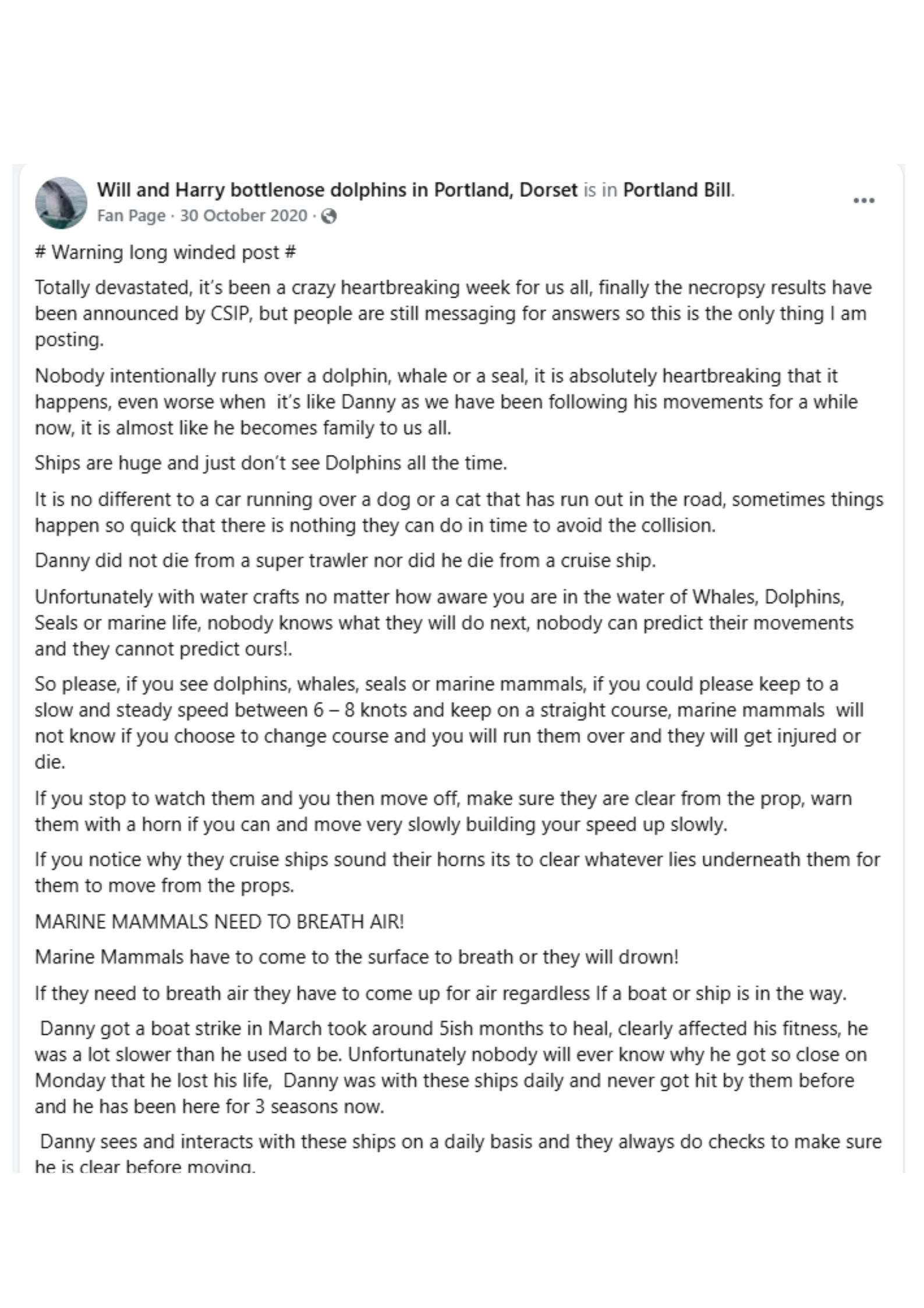 One sad case is that of ‘Danny’, an extremely confident solitary bottlenose dolphin in Dorset, who lost his life in 2020 from a boat strike.Â