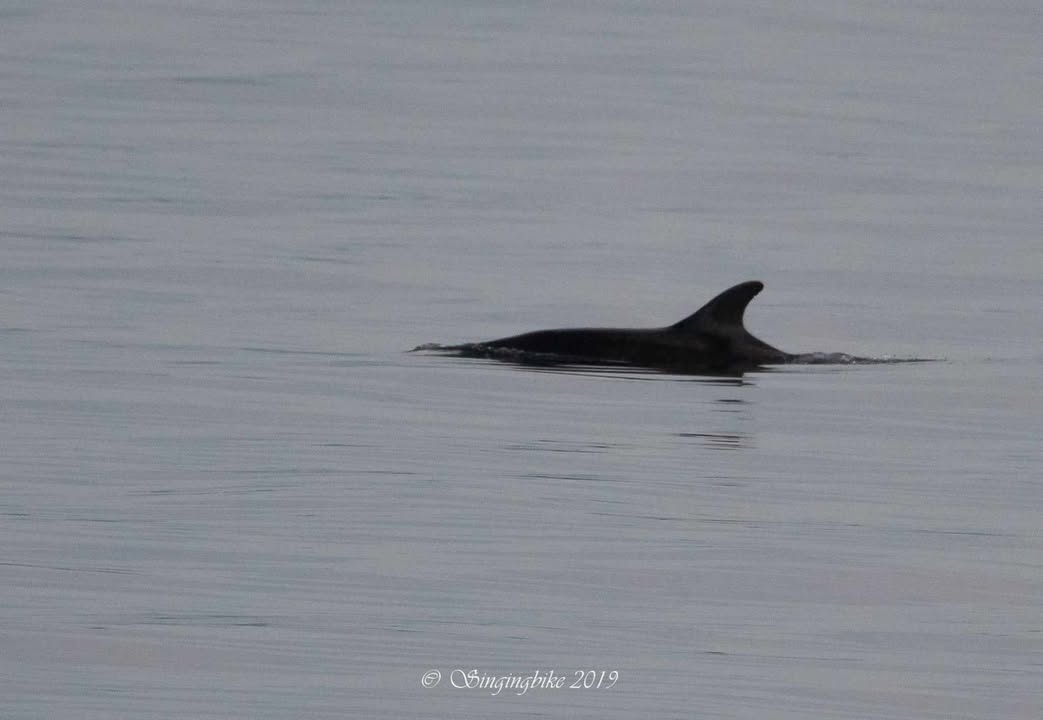 Photographs taken in Peel in January 2020 were shared and dorsal fin matches were confirmed by both CWDW and MWDW. Lunar (son of Moonlight) has a light-coloured tip to his dorsal fin but it’s only clear in certain light. We can recognise his fin in some of these gallery images. Other dolphins in this Peel encounter are thought to be Zephyr and Zulu, from the same family pod.Â